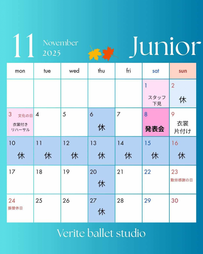 ジュニアの発表会のため土曜日と金曜19時のクラスがお休みとなります🙇‍♀️🙏