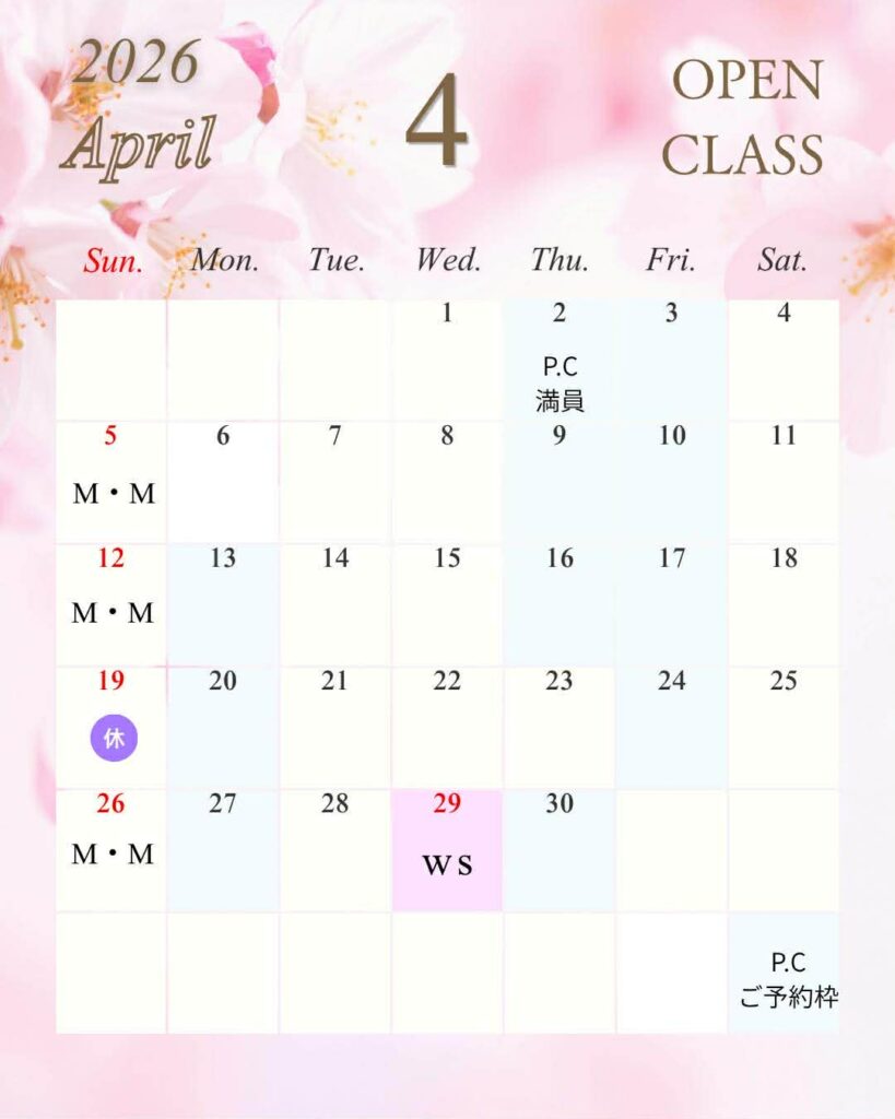 🌸4月29日・5月6日(水・祝)はWSを予定してます。詳細は別途お知らせいたします🙏😊